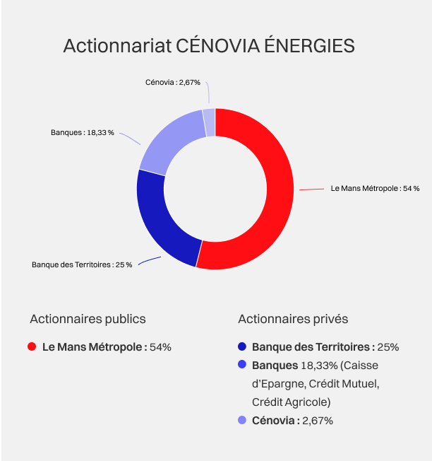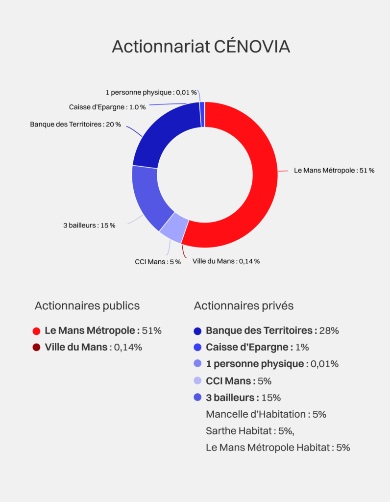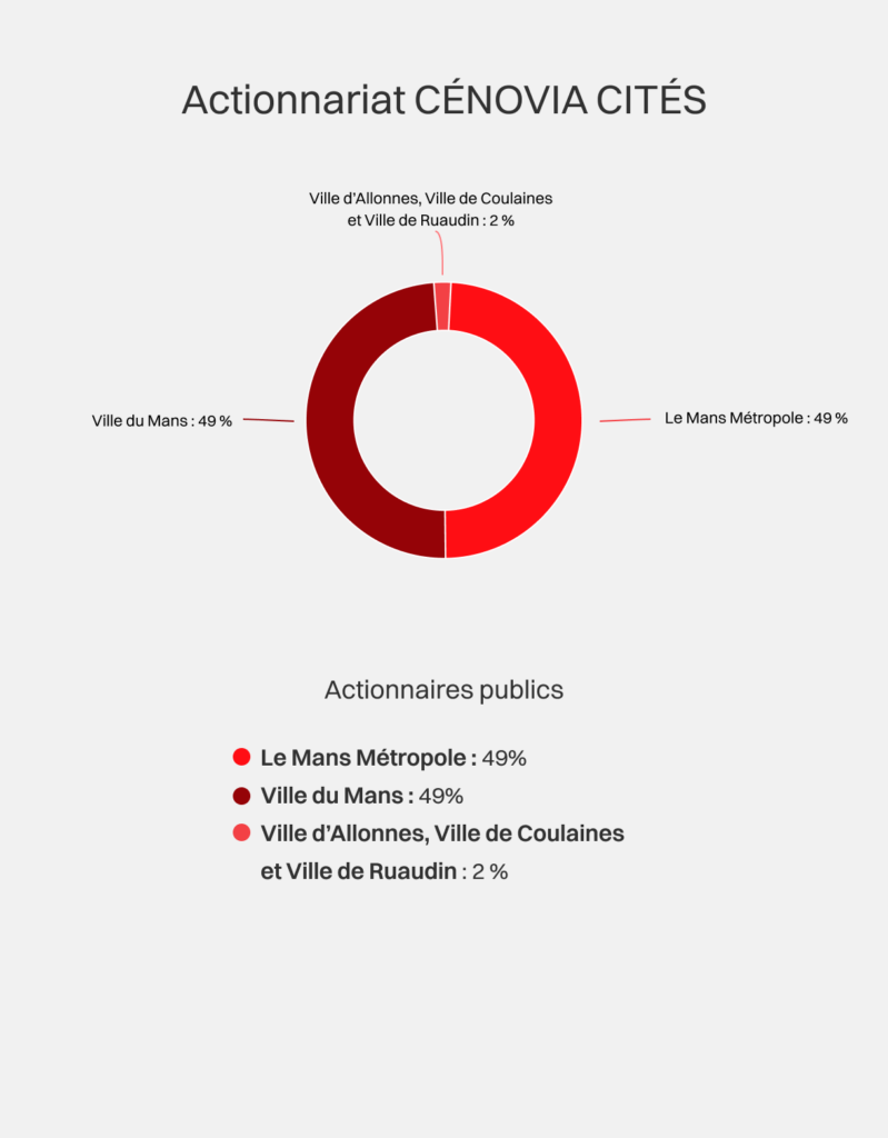 Le Mans Métropole est l’actionnaire majoritaire des 3 sociétés : Cénovia, Cénovia Cités et Cénovia Energies