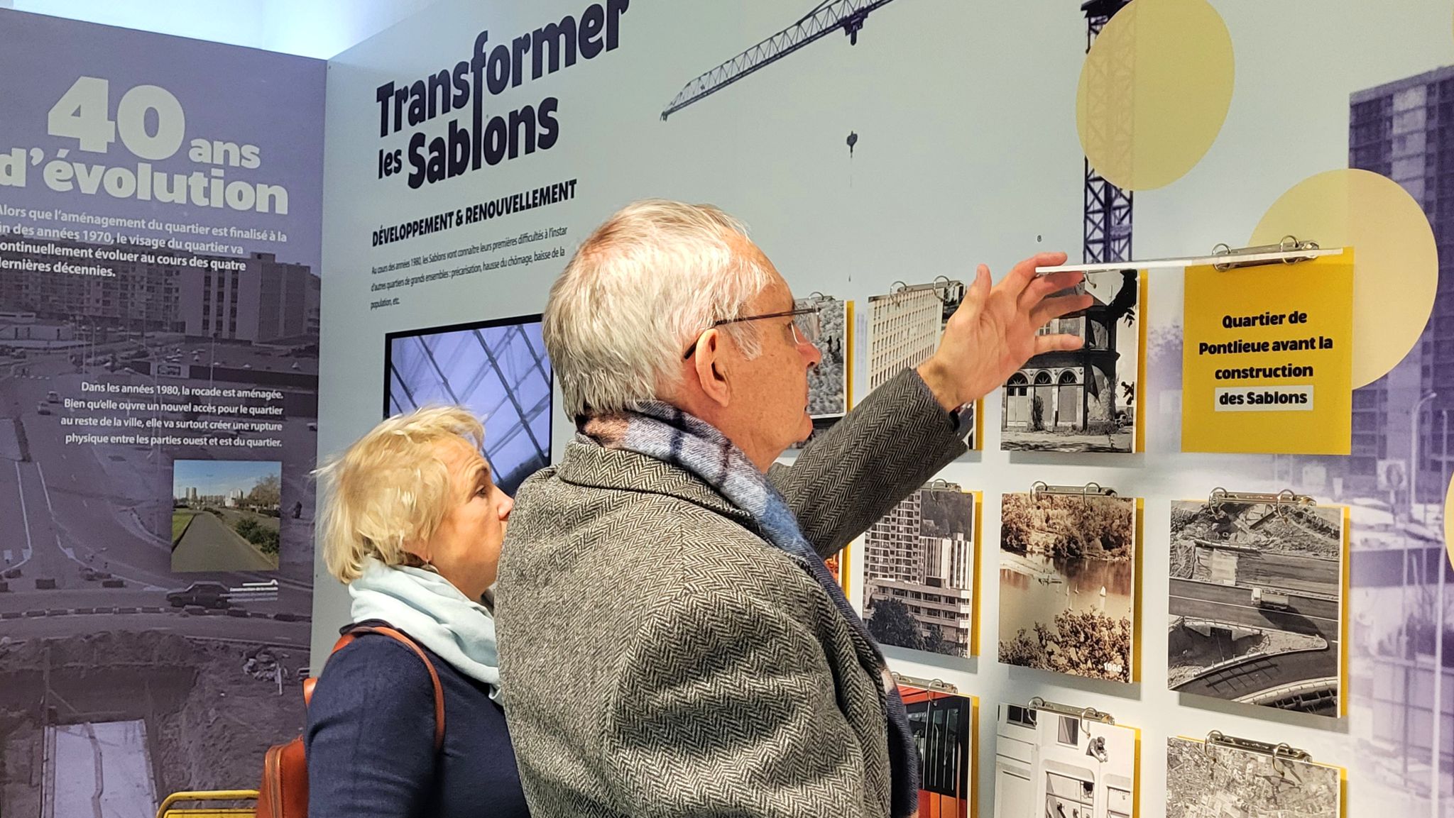 Plans, vidéos d’archives, photographies historiques sont présentés pour comprendre les évolutions successives du projet. L’exposition présente également les cinq grands enjeux identifiés qui servent actuellement de fil conducteur au projet de restructuration :