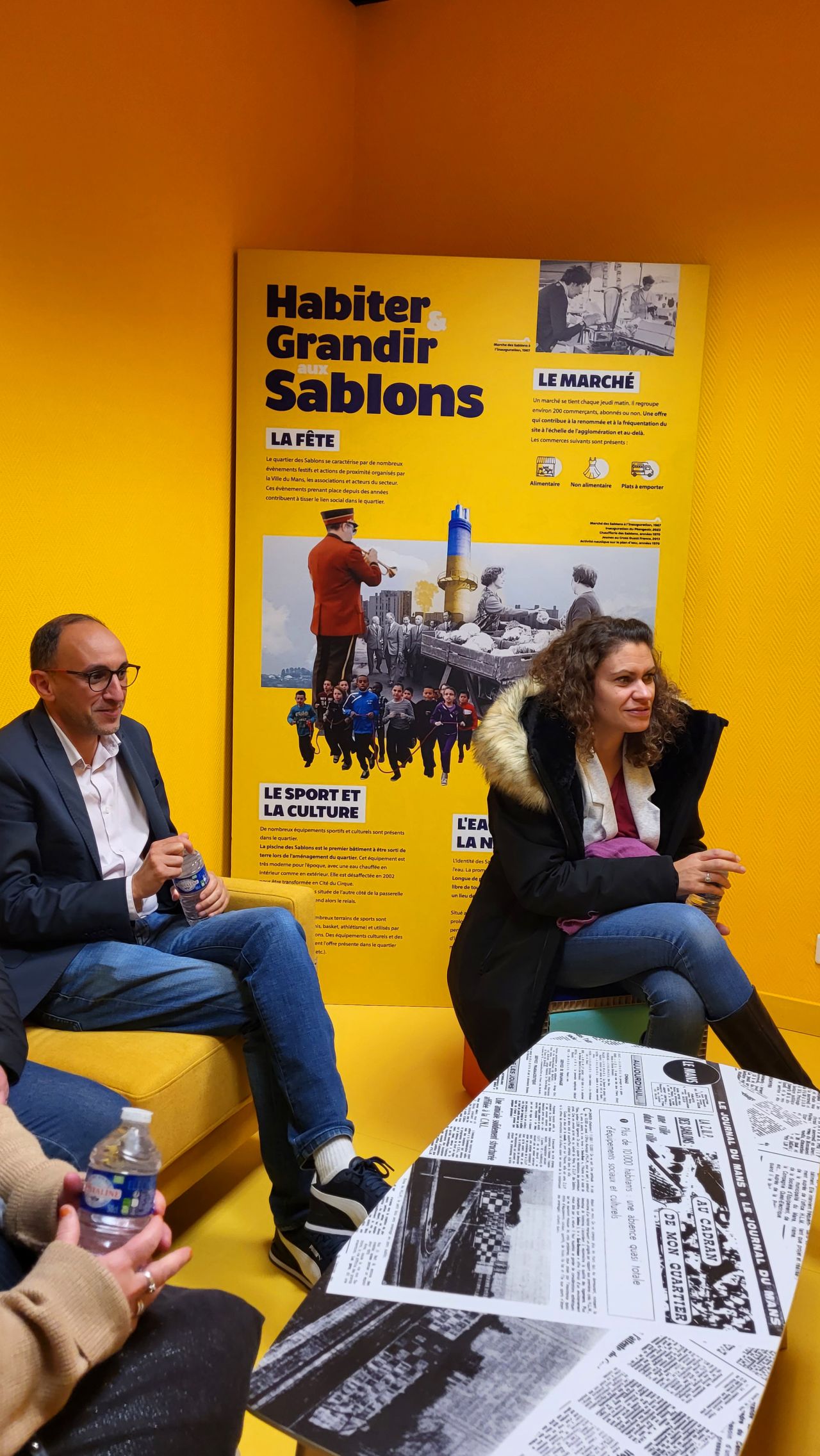 Stéphane LEFOLL, Maire du Mans et Président de Le Mans Métropole, Christophe COUNIL, conseiller communautaire délégué à la ville durable, à la politique de l’urbanisme et aux grands projets et Loïc SÉVIN, Directeur Général Délégué de Cénovia et Cénovia Cités ont inauguré le 15 décembre dernier l’exposition qui retrace la vie du quartier des Sablons et de son centre commercial à travers ses visages et ses transformations.